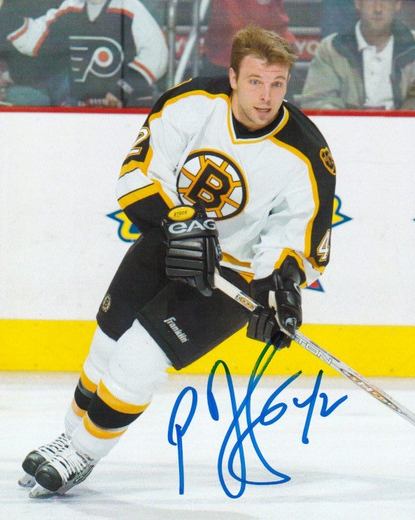 Patrice Bergeron hand signed this 16x20 photo. A Sure Shot Promotions and Patrice Bergeron Certificate...