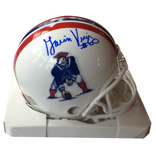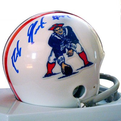 Patriots Legend Stanley Morgan hand signed this Patriots Throwback mini helmet with a Pats HOF...