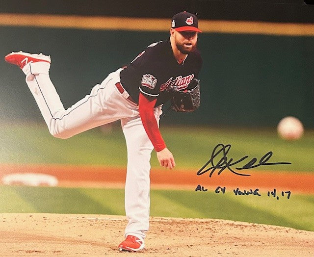 Cy Young winner Corey Kluber hand signed this 16x20 photo with a 14,17 Cy Young...