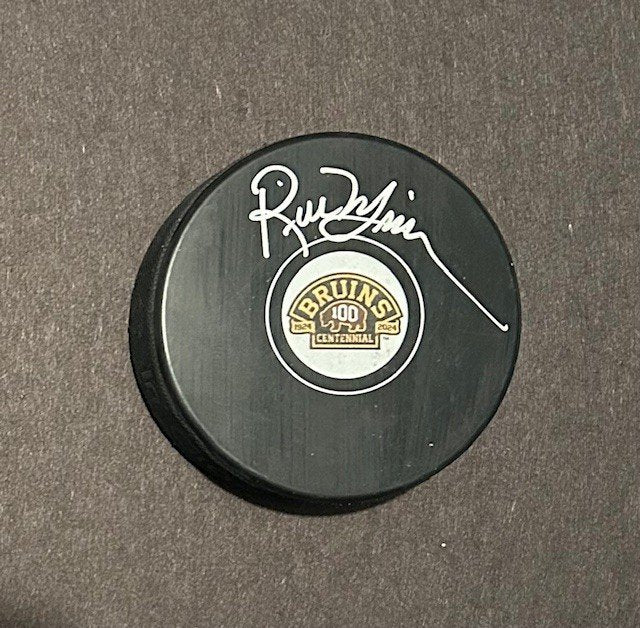 Rick Middleton hand signed this Bruins Centennial Puck. A Sure Shot Promotions certificate of authenticity...