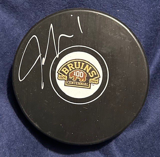 Jeremy Swayman hand signed this Centennial Bruins Hockey Puck. A Sure Shot Promotions Certificate of...