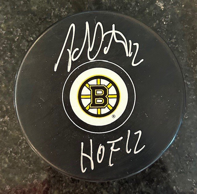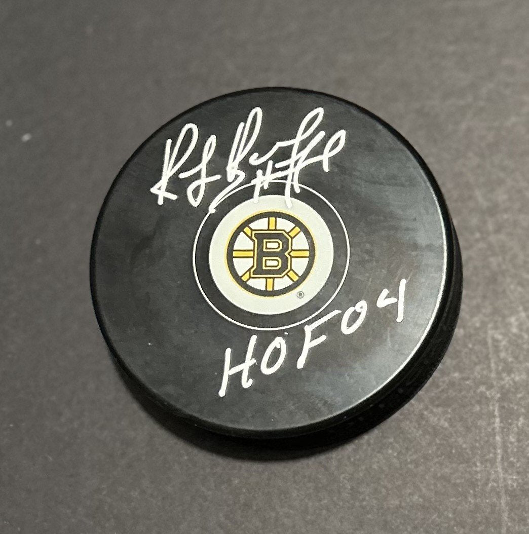 Ray Bourque hand signed this puck with a HOF 04 Inscription. A Sure Shot Promotions...