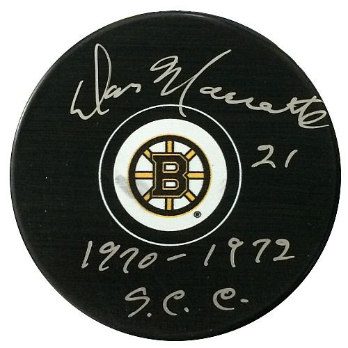 Don Marcotte hand signed this puck with a "1970-1972 S.C.C" inscription. A Sure Shot Promotions...