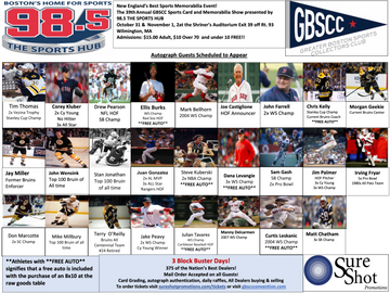 SureShot Promotions the Greater Boston Sports Collectors Club will be hosting autograph guests at the 39th Annual GBSCC Card Show. Below are more details and individual tickets