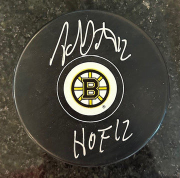 Adam Oates hand signed this Bruins puck with a HOF 11 inscription. A Sure Shot Promotions certificate of authenticity is included