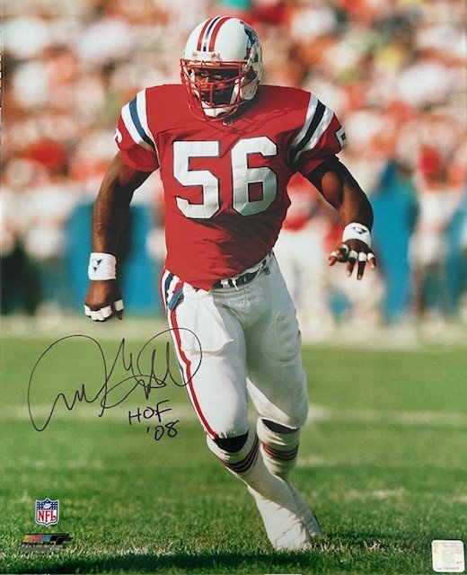 Andre Tippett hand signed this 16x20 photo with a “HOF” inscription. A Sure Shot Promotions Certificate of Authenticity is included.