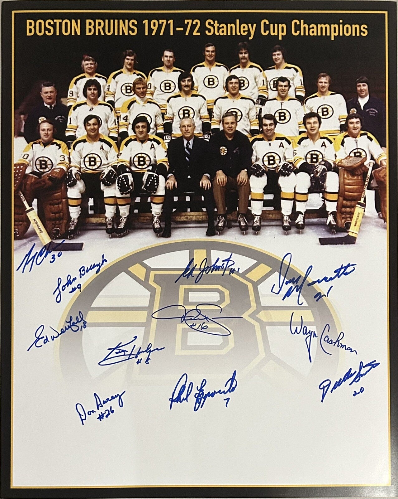 This 16x20 Photo of the 1971-1972 Boston Bruins Team has been hand signed by the following players: