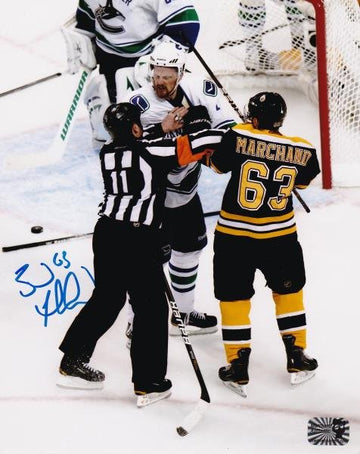 Brad Marchand hand signed this 8x10 photo. A Sure Shot Promotions Certificate of Authenticity is included.
