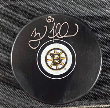 Brad Marchand hand signed this puck. A Sure Shot Promotions Certificate of Authenticity is included.