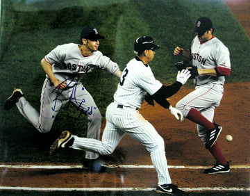 Bronson Arroyo hand signed this 16x20 glossy photo at a Sure Shot Exclusive event with a "Nice Try A-Rod" inscription. The photo depicts the famous "Slap" play with A- Rod from the ALCS. A Sure Shot Promotions Certificate of Authenticity is included.