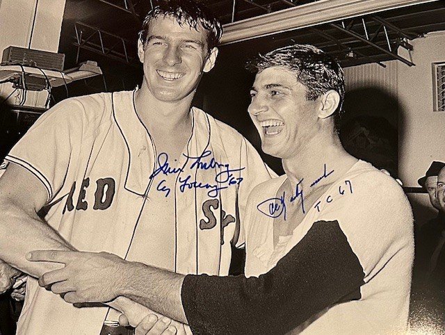 Red Sox Legends Jim Lonborg and Carl Yastrzemksi hand signed this photo with a Cy Young and TC 67 inscriptions. A Sure Shot Promotions Certificate of Authenticity is included