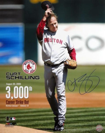 Curt Schilling hand signed this 16x20 glossy photo. A Sure Shot Promotions Certificate of Authenticity is included.