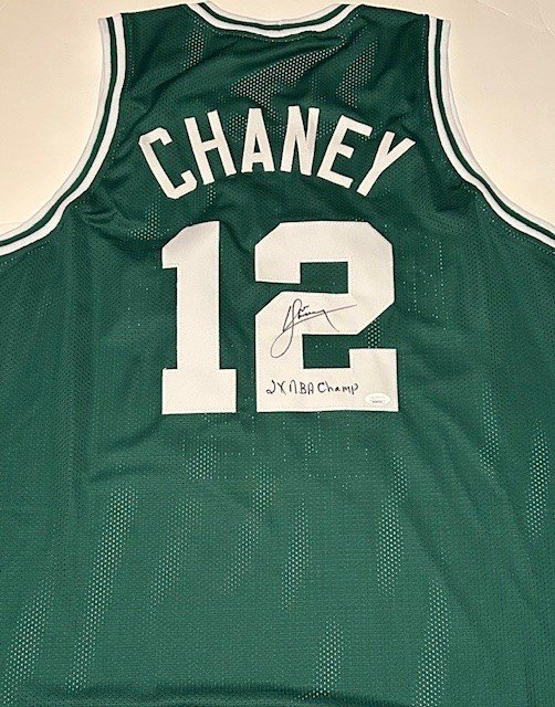 NBA Champ Don Chaney hand signed this custom Celtics jersey with a 2x NBA Champ inscription. A Sure Shot Promotions certificate of authenticity is inlcuded.