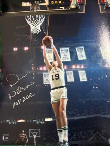 Don Nelson hand signed this 16x20 photo with a HOF 2012 inscription. A Sure Shot Promotions Certificate of Authenticity is included.