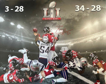 Donta Hightower hand signed this 16x20 that shows 3 key plays of the SB LI 28-3 Comeback. A Sure Shot Promotions certificate of authenticity is included.