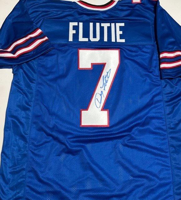 Doug Flutie hand signed this custom jersey.A Sure Shot Promotions certificate of authenticity is included