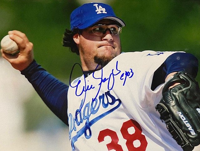 Eric Gagne hand signed this 8x10 photo with a "CY 03" inscription. A Sure Shot Promotions certificate of authenticity is included