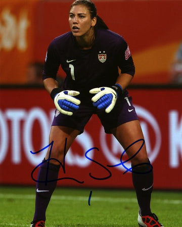Hope Solo hand signed this 16x20 glossy photo. A Sure Shot Promotions Certificate of Authenticity is included.
