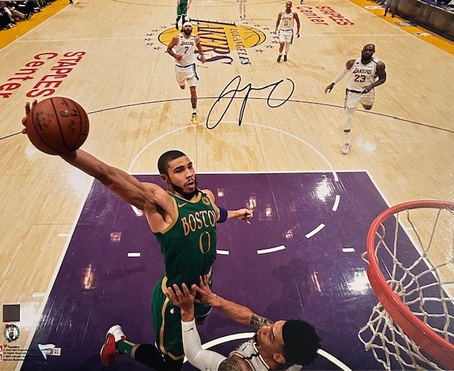 Jayson Tatum hand signed this 16×20 dunk photo against the Lakers.