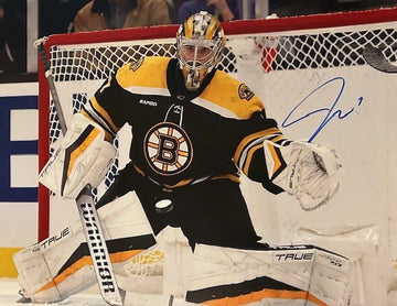 Bruins Goalie Jeremy Swayman hand signed this 16x20 Photo. A Sure Shot Promotions certificate of Authenticity is included