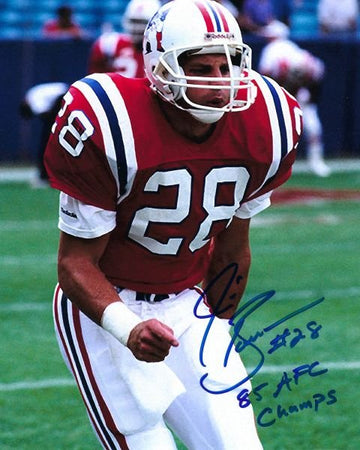 Jim Bowman hand signed this 8x10 glossy photo with an "85 AFC Champs" inscription.