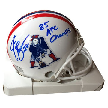 Jim Bowman hand signed this mini helmet with an "85 AFC Champs" inscription. A Sure Shot Promotions Certificate of Authenticity is included.