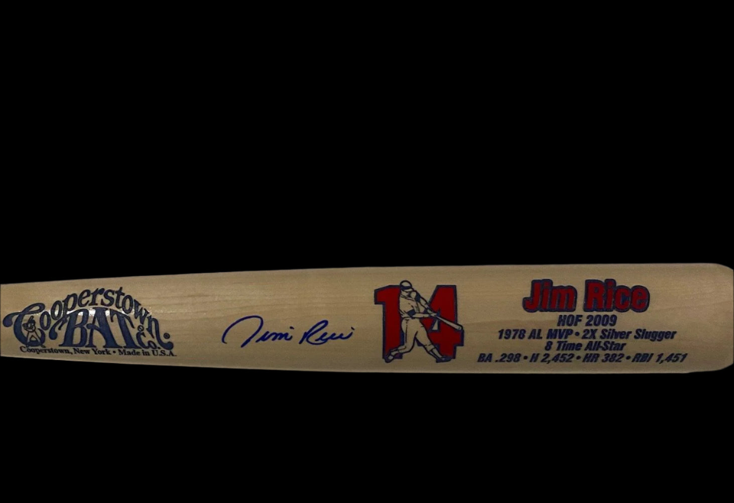 Jim Rice autographed 14 of these custom limited-edition Cooperstown baseball bats with his name number and significant career Statistics engraved in them.