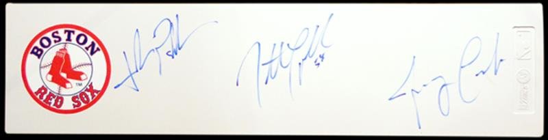 Jonathan, Joshua and Jeremy Papelbon hand signed this pitching rubber at a Sure Shot Exclusive event.