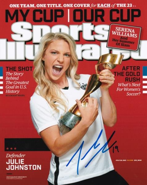 Julie Johnston Ertz hand signed this 8x10 glossy photo. A Sure Shot Promotions Certificate of Authenticity is included.