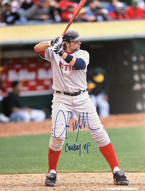 WS Champ Kevin Millar hand signed this 16x20 photo with a “Cowboy Up” inscription. A Sure Shot Promotions certificate of authenticity is included