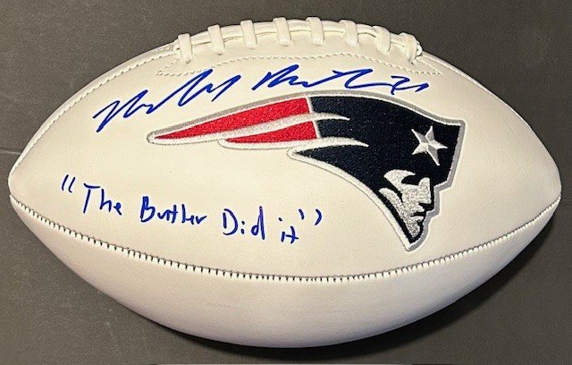 SB Legend Malcolm Butler hand signed this Patriots Superbowls Football with a “The Butler Did It” inscription. A Sure Shot promotions certificate of authenticity is included