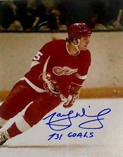 Marcel Dionne hand signed this glossy 8x10 photo with a "731 Goals" inscription. A Sure Shot Promotions Certificate of Authenticity is included.