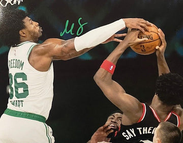 Marcus Smart hand signed this 8x10 glossy photo. A Sure Shot Promotions Certificate of Authenticity is included.