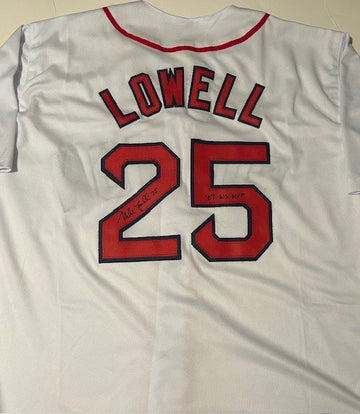 WS MVP Mike Lowell hand signed this custom Red Sox Jersey with a 2007 WS MVP inscription. A Sure Shot Promotions certificate of authenticity is included.