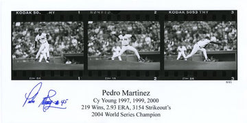 Pedro Martinez hand signed this 8x20 glossy photo. A Sure Shot Promotions Certificate of Authenticity is included.