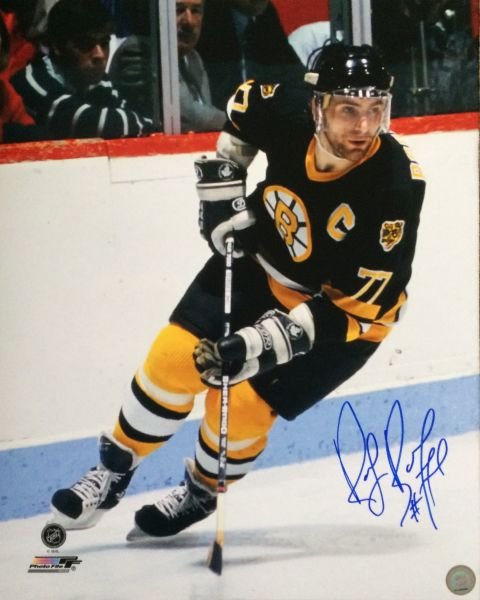 Ray Bourque hand signed this 16x20 photo. A Sure Shot Promotions certificate of authenticity is included.
