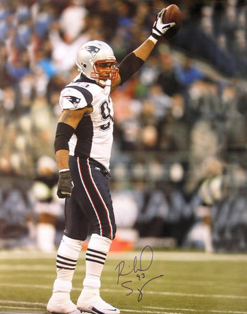Super Bowl Champion Richard Seymour hand signed this 16x20 glossy photo at a Sure Shot Exclusive event.