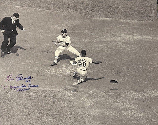 Rico Petrocelli hand signed this 16x20 photo with a 67 Impossible dream inscription. A Sure Shot Promotions certificate of authenticity is included