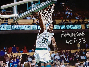 Robert Parish hand signed this 16x20 glossy photo with a HOF insription. A Sure Shot Promotions Certificate of Authenticity is included.