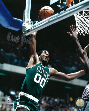 Robert Parish hand signed this 8x10 glossy photo. A Sure Shot Promotions Certificate of Authenticity is included.