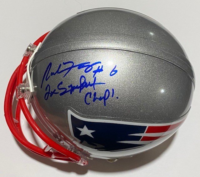 Rohan Davey hand signed this patriots mini helmet with a "2x Superbowl Champ" inscription. A Sure Shot Promotions Certificate of Authenticity is included.
