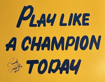 Rudy Ruettiger hand signed this Play Like a Champion Today 16×20 photo. A Sure Shot Promotions certificate of authenticity is included.