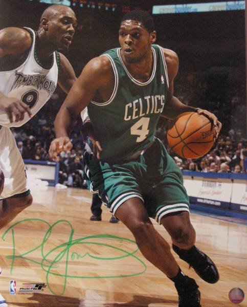 Ryan Gomes hand signed this 16x20 glossy photo in green ink at a Sure Shot Exclusive event. A Sure Shot Promotions Certificate of Authenticity is included.