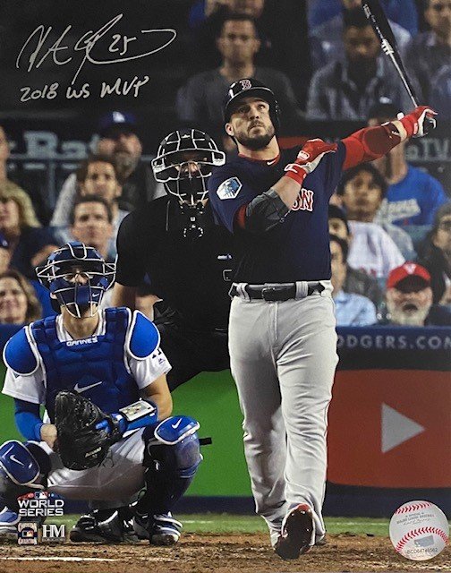 2018 World Series MVP Steve Pearce hand signed this 8x10 photo with a "2018 WS MVP" inscription. A Sure Shot Promotions Certificate of Authenticity is included.