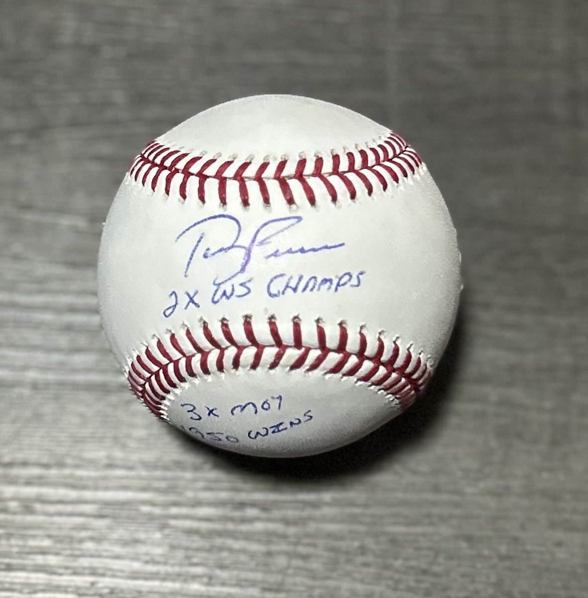 Terry Francona hand signed this official major league baseball with a “2x WS Champ, 3x MOY, 1950 Wins” Inscription. A JSA certificate of authenticity is included.