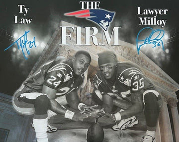 Ty Law and Lawyer Milloy hand signed this 16x20 photo.
